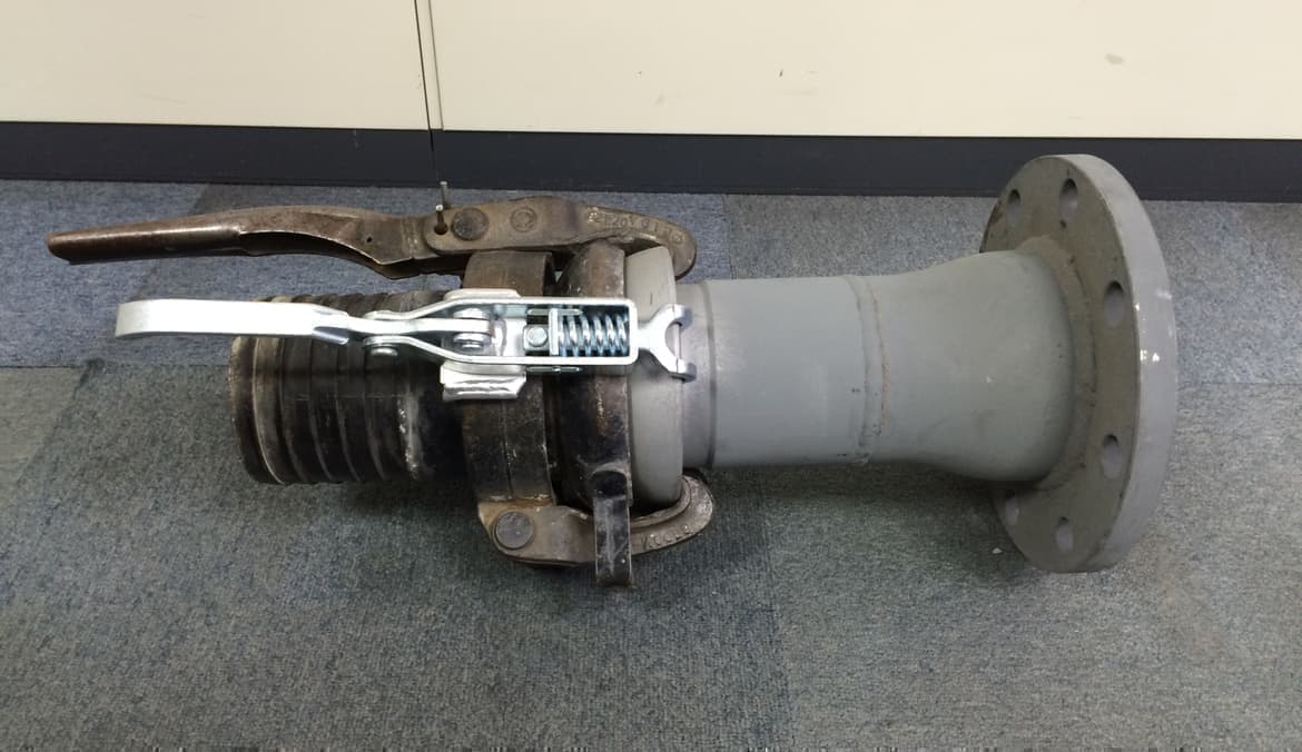 バルク車(粉体セメントを運搬するローリー車、ジェットパック®とも呼ばれる)のホースとと配管との接続は、圧送の際のホースの脈動・あるいはホース自体の重量によりすき間が生まれやすく、セメントの噴出あるいはホースが脱落する危険が発生する。